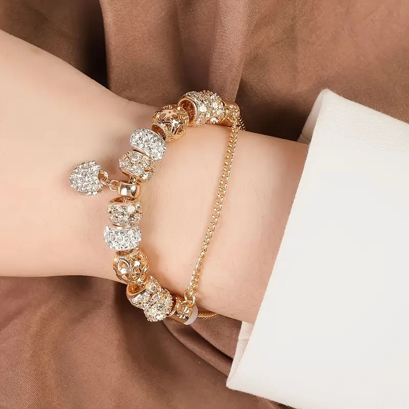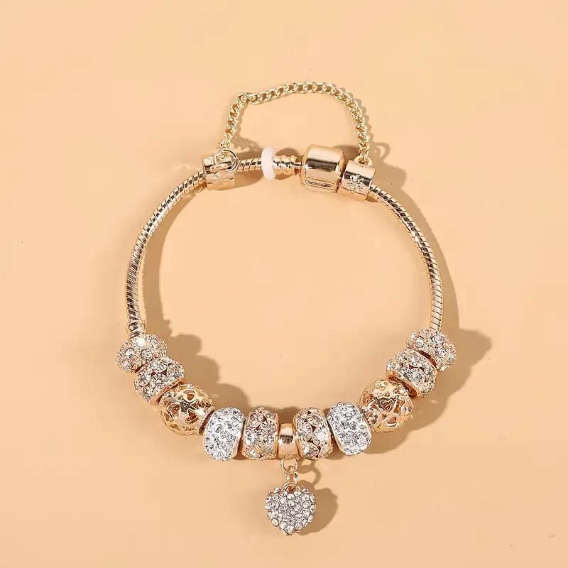 1pc Shiny Love Heart Pendant Bangle Bracelet Elegant Hand Chain Jewelry For Women DIY
