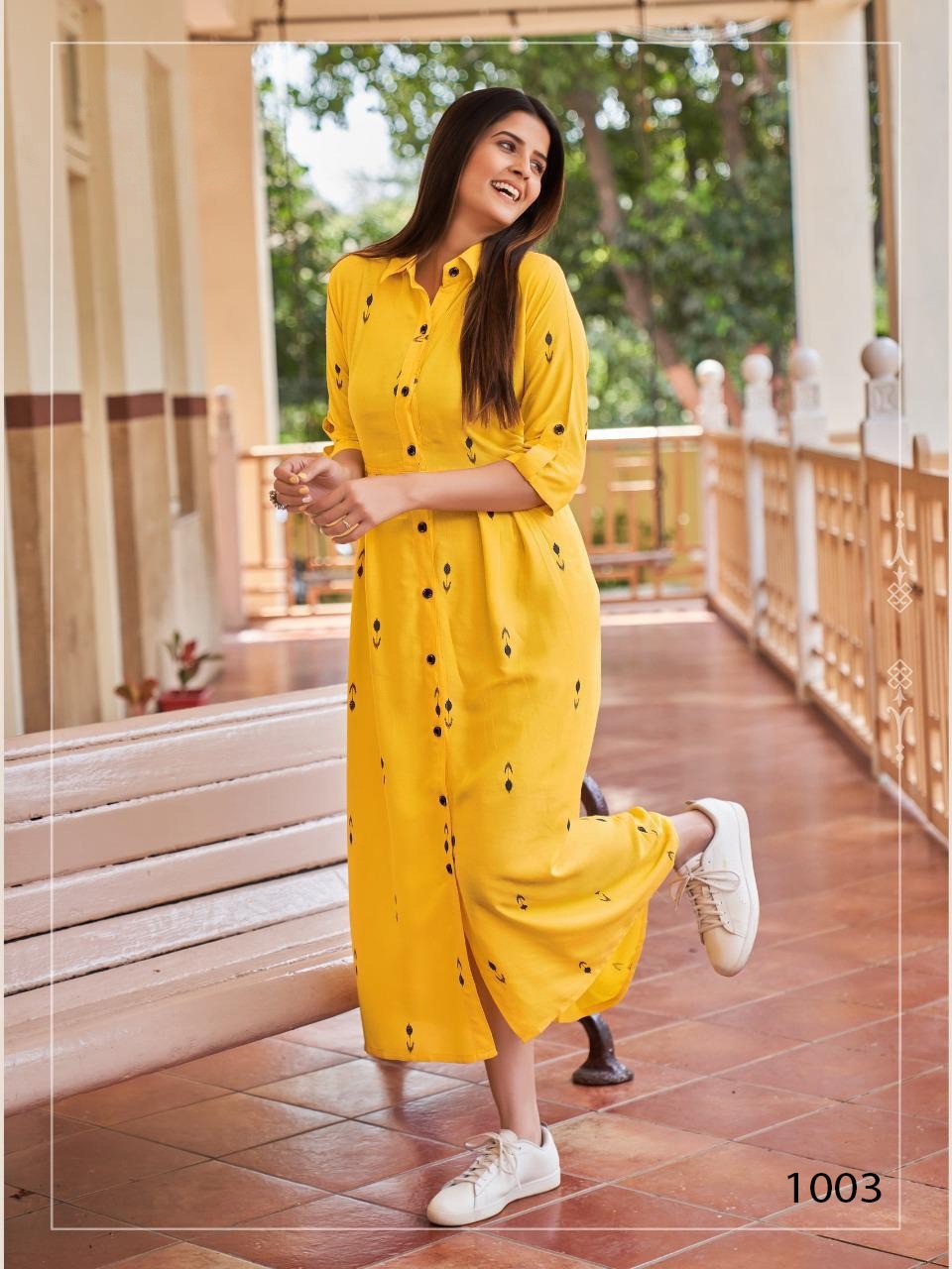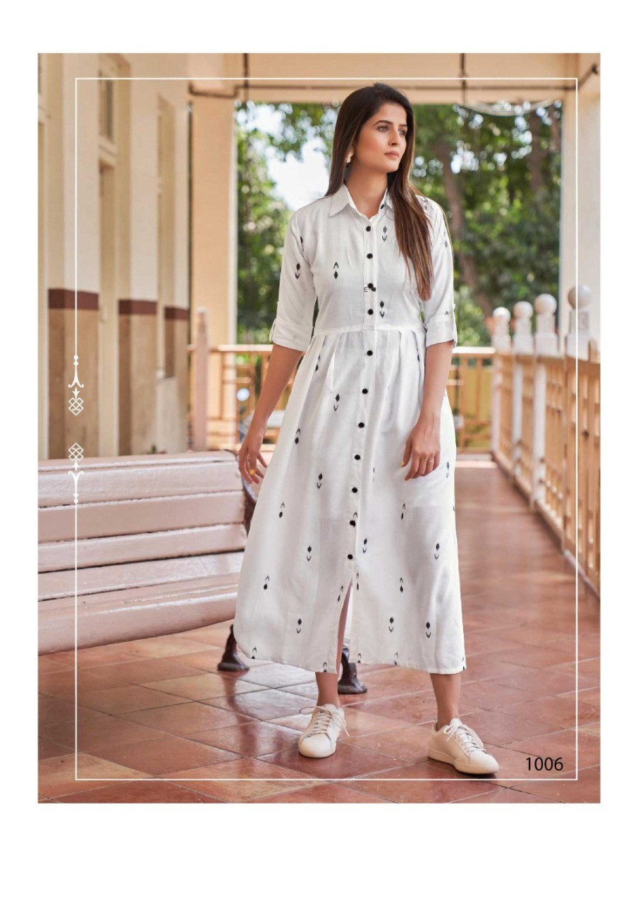 MAKE THE LITTLE GIRL YOU USED TO BE PROUD OF THE WOMAN YOU ARE NOW. A beautiful maxi dress in Rayon (14-KG) fabric with Digital Printand with Upto 48 Inch Length and slit in front and full Botton line and 3/4 sleeves.