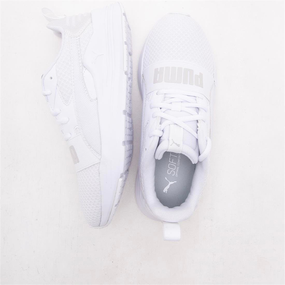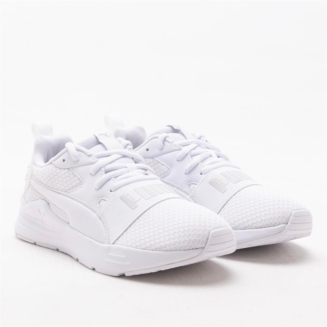 The Adult’s Puma ‘Wired Run Pure’ trainers are designed for dynamic performance and bold street style. Featuring the Puma logo on the front tongue, back heel, outer side, and front toe, they deliver full-brand visibility and a striking sporty look. The front lace fastening ensures a secure and adjustable fit for all-day comfort. Crafted with a breathable textile upper, these trainers provide lightweight support and ventilation for active wear. Their sleek silhouette offers a modern and versatile profile suitable for workouts or casual outings. A cushioned insole delivers responsive comfort and shock absorption with every step. The flexible construction allows natural foot movement during running, training, or daily activities. Durable stitching enhances long-lasting performance and maintains the shoe’s shape. The outsole provides reliable grip and traction across various surfaces. Lightweight design reduces foot fatigue while maintaining stability. Perfect for pairing with joggers, shorts, or casual outfits for a sporty aesthetic. Soft inner lining ensures comfort without irritation. The stylish details and full-brand placement give them a contemporary edge. Ideal for fitness sessions, running, or casual streetwear looks. The Puma Wired Run Pure trainers combine comfort, breathability, and iconic branding in one performance-driven and fashionable shoe.