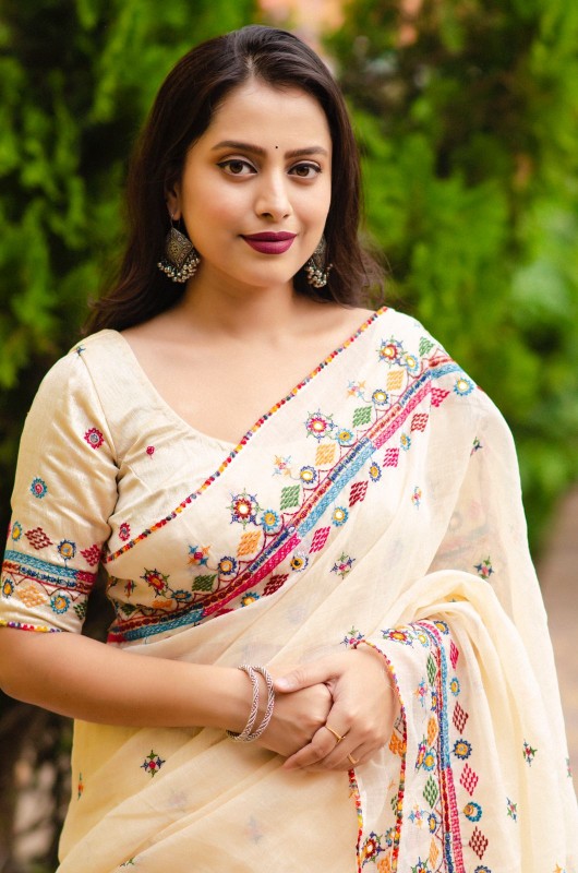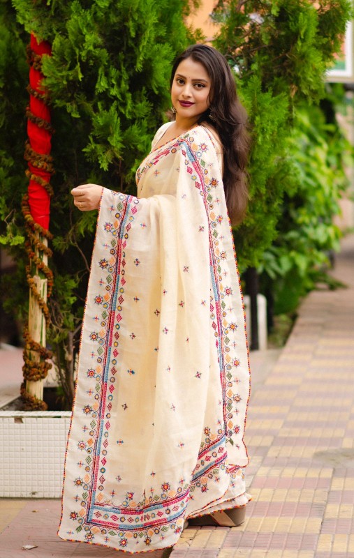 speciality- multicolor thread emboridary with placement of aari mirror in between.