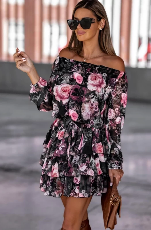 All over florals with elasticated bardot/off shoulder detail
