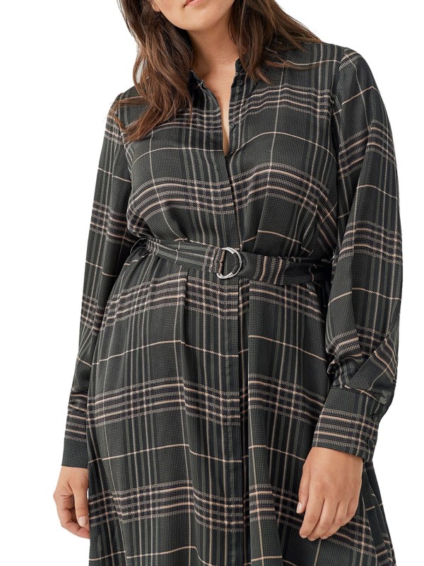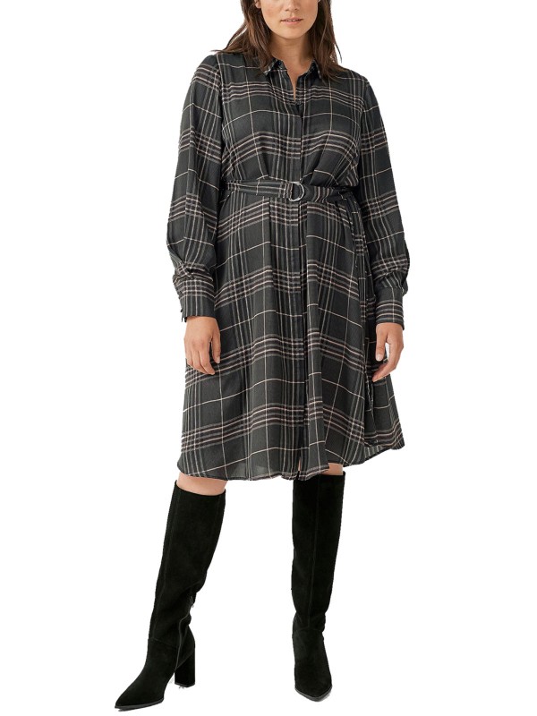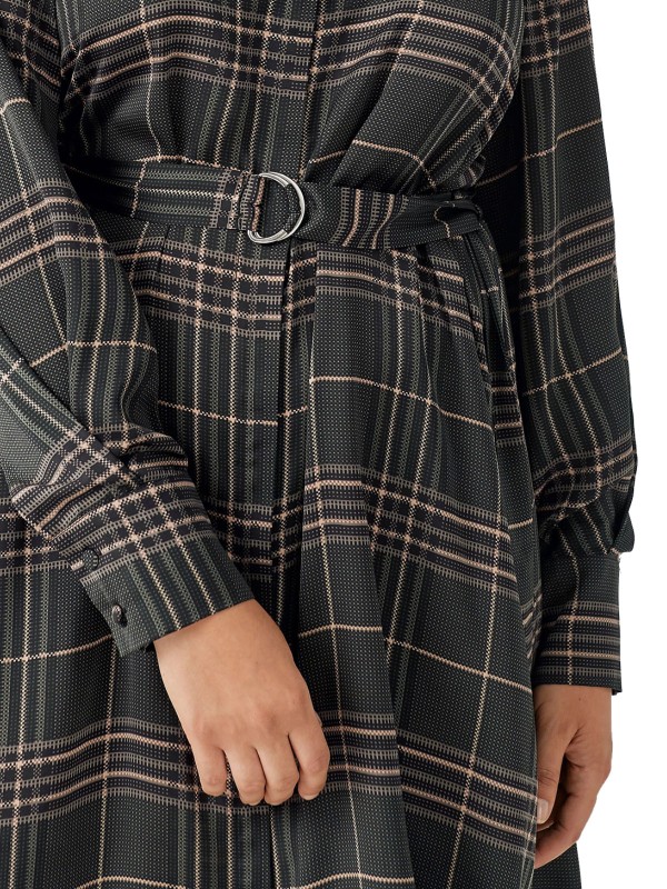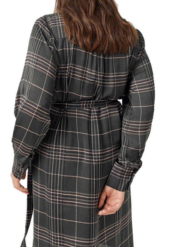 Anice shirt dress with a stylish flared design. Small belt loops and a belt with a metal buckle at the waist. Shirt collar and full-length buttoning on the front. Hidden buttons and wide sleeves, wide cuffs on the cuffs. Lightly rounded hem and side slits. Soft flowing satin with a printed pattern. Back length approx. 112cm in size 46/48.