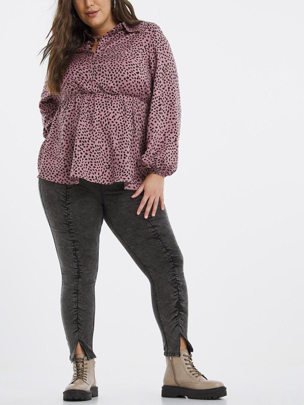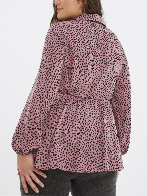 This pretty printed shirt features a cute puff sleeve detail for an feminine touch. This top also has a button front and classic shirt collar. Length 29in.