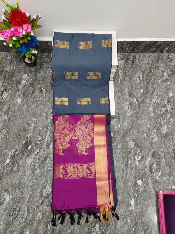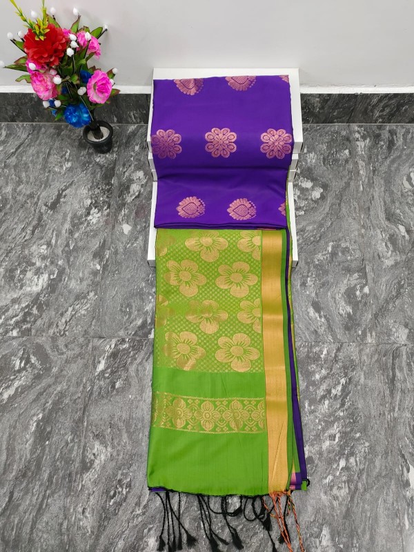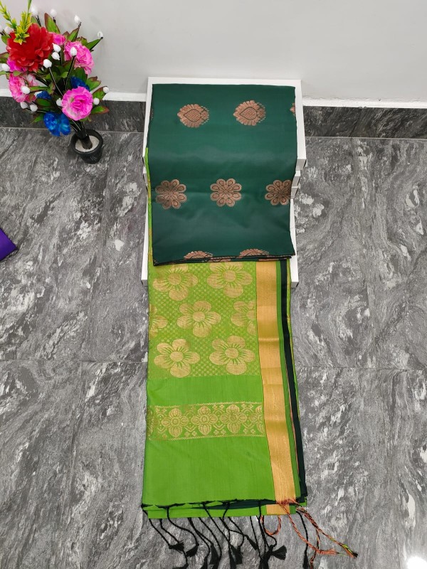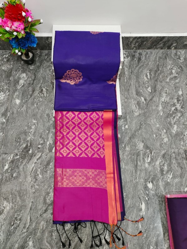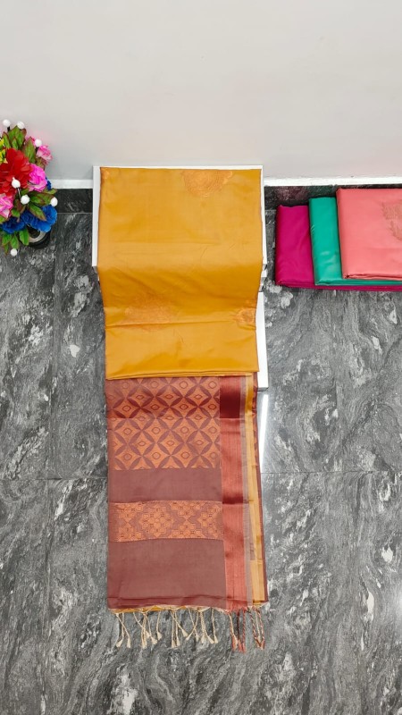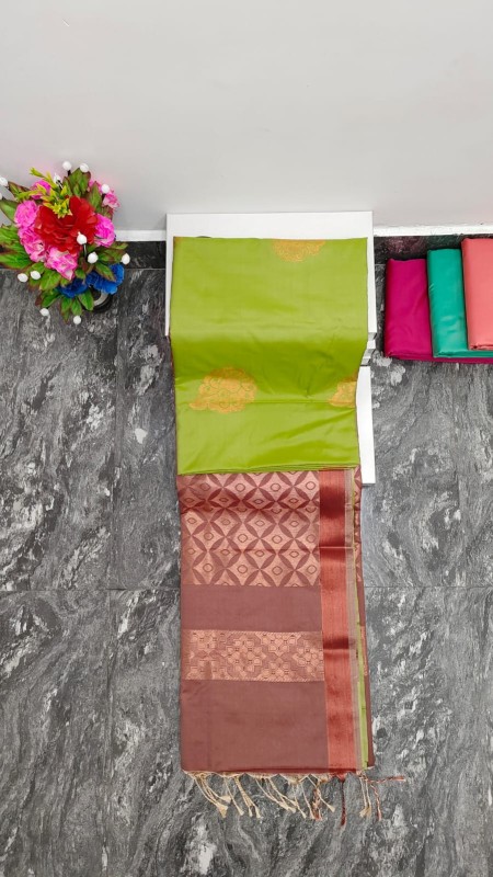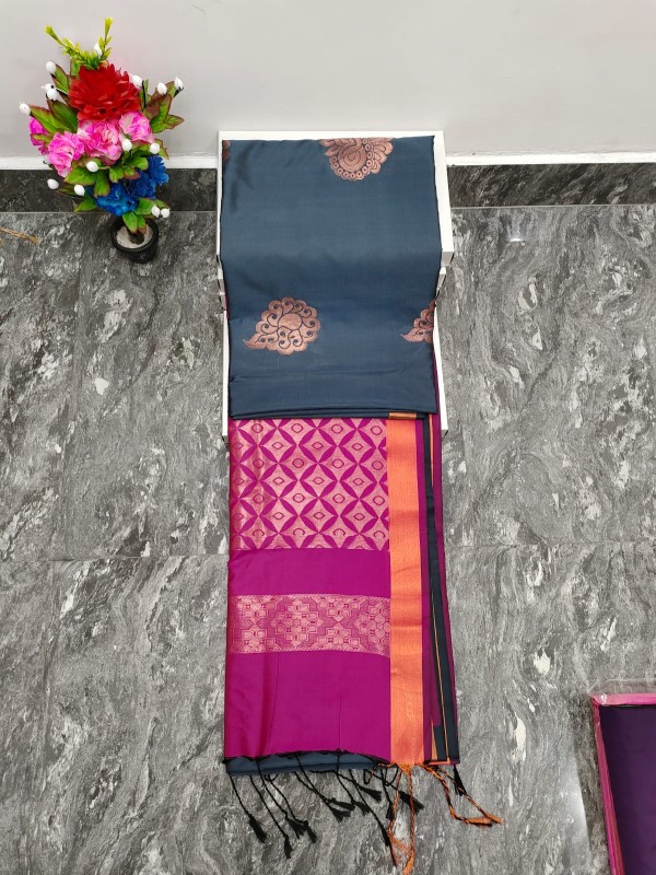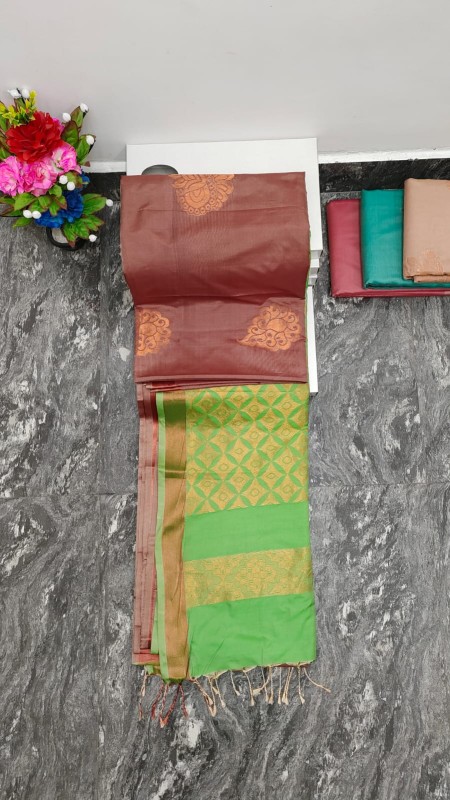 All Over copper Jari Buttas Rich contrest Pallu And contrest Blouse Light Weight and Soft Cloth