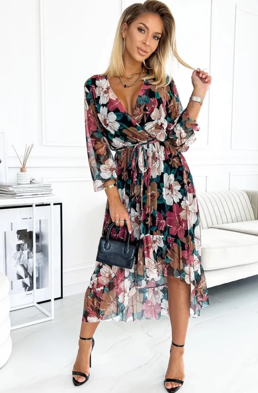 All over florals with low cut 'V' front wrap neckline