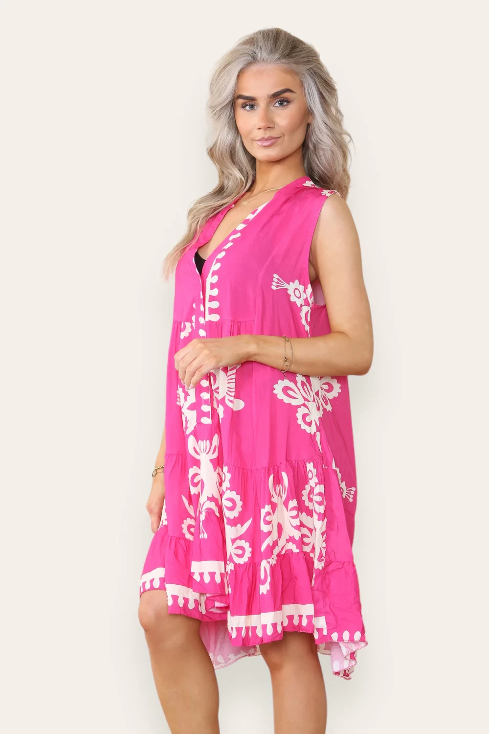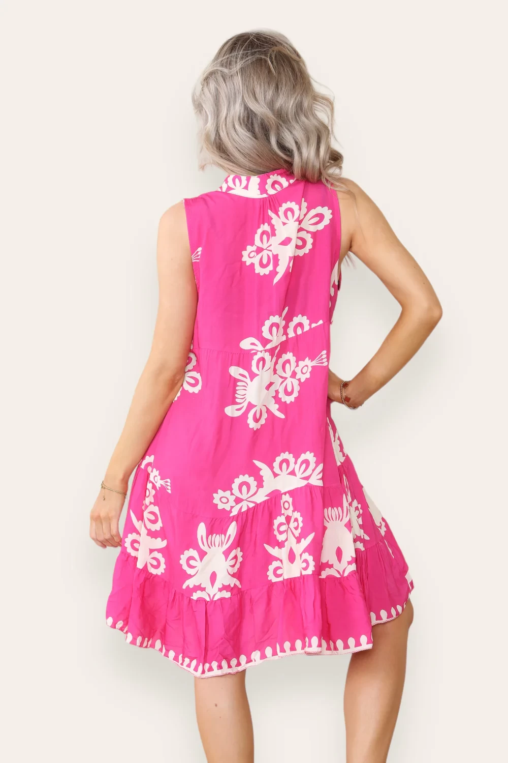 PRINTED SLEEVELESS SMOCK DRESS