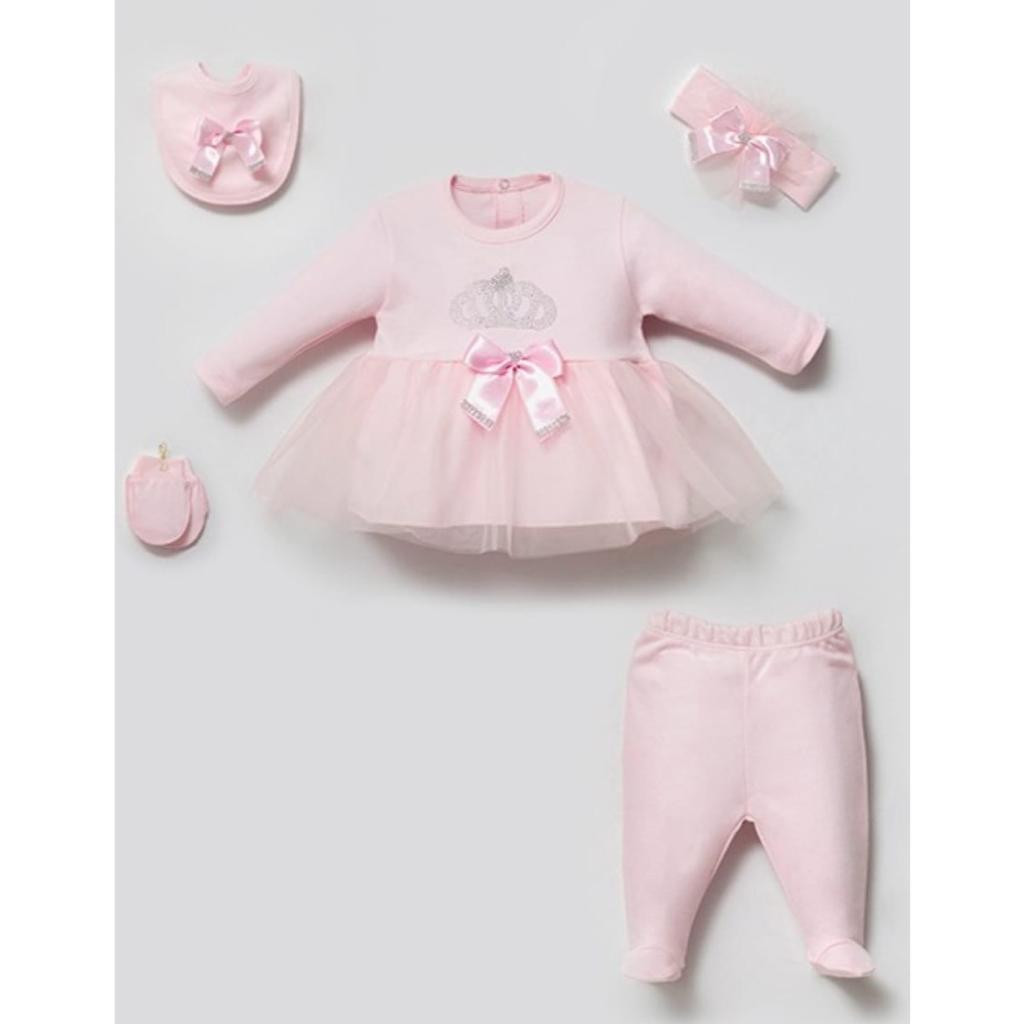 Baby Girls 5 Piece Diamante Crown Set with Headband, Mittens & Bib (0-3M)
