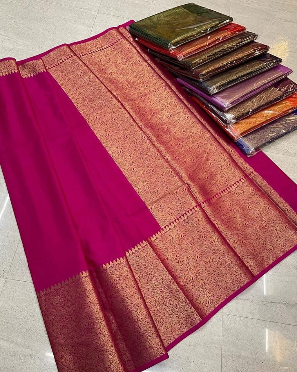 *Banarasi Semi.waham daibal silk soft fancy border gold zari fancy Colors full body 2day fancy saree contrast rich pallu*