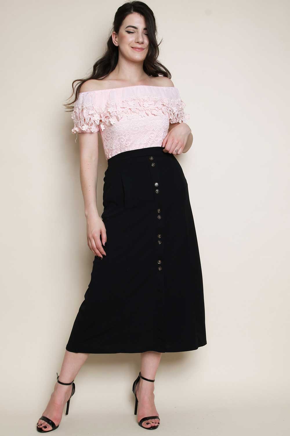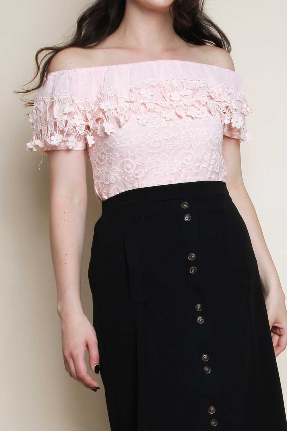 Bardot Off Shoulder Crochet Detail Frill Lace Top