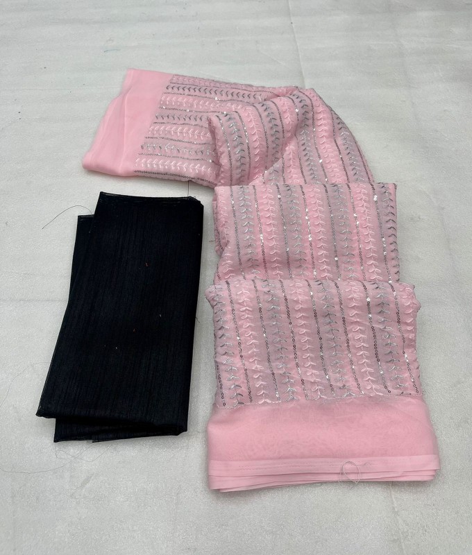 Fabric Details Full Saree Of 60 Gram Georgette With Heavy Sequence Work Sequence Work Done On sareee BEAUTIFUL SEQUINS WORK ALL OVER SAREE ( till 5.5 full work is there ) BLOUSE-SILK Beautiful Border