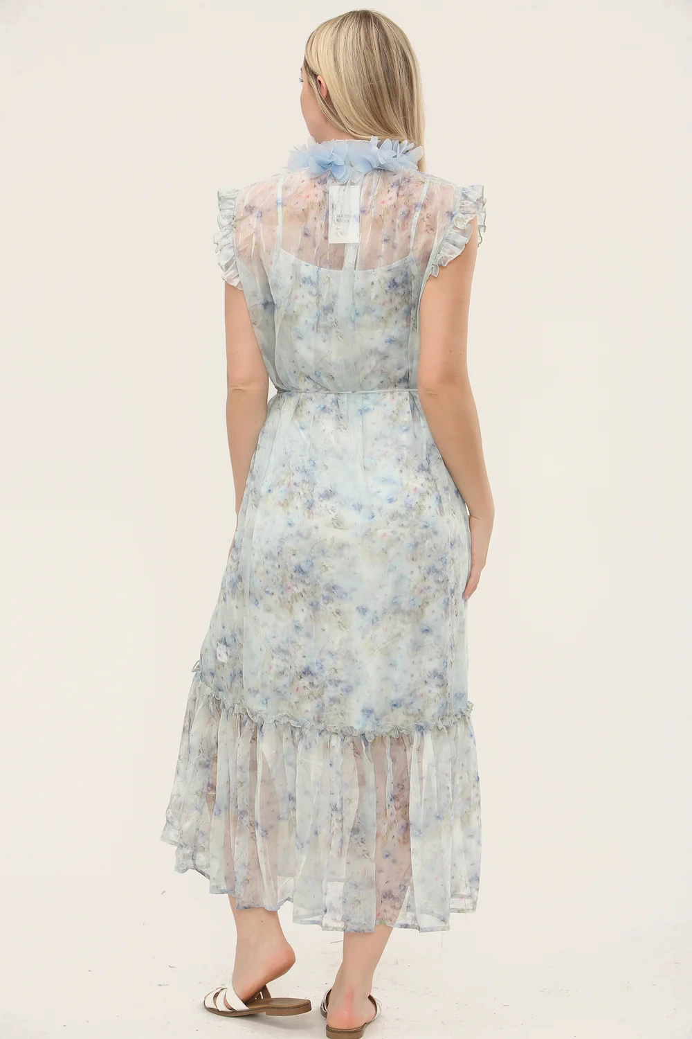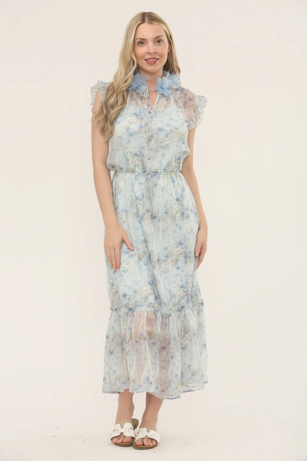BELTED FLORAL MIDI DRESS