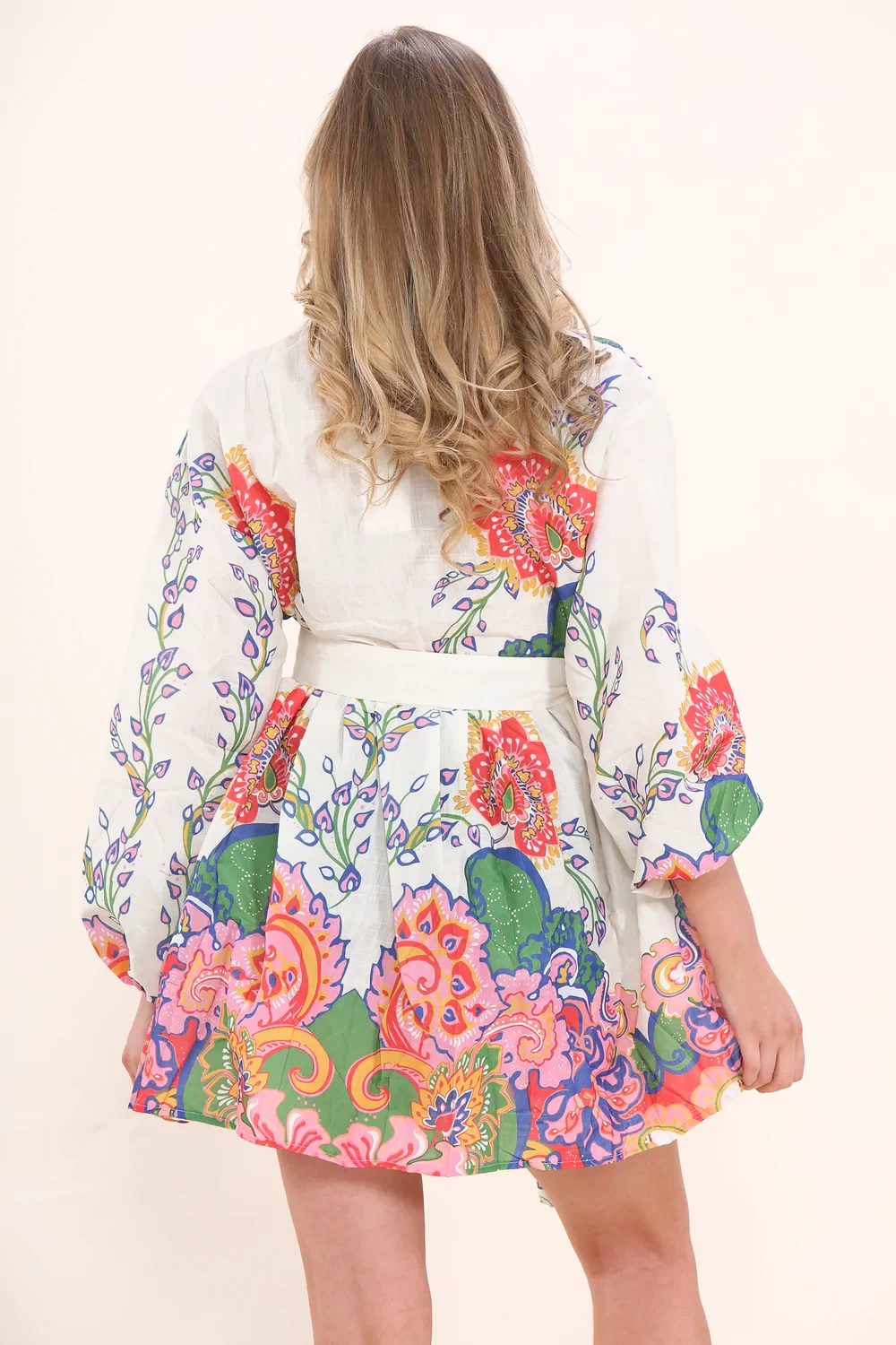 FLORAL PUFF SLEEVE MAXI WITH SIDE SLIT