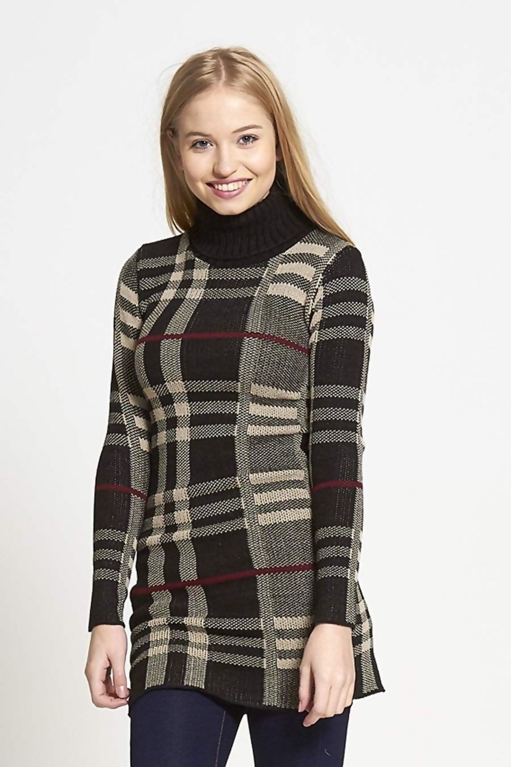 https://thehappyworld.co.uk/product/black-cowl-neck-long-sleeve-tartan-knitted-dress