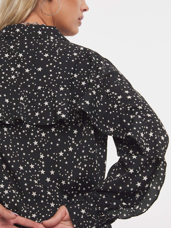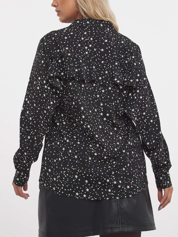 This shirt will be a favorite in your wardrobe this season. Featuring an amazing mono star print, relaxed shirt fit and a back frill detail. Length 27in/70cm.