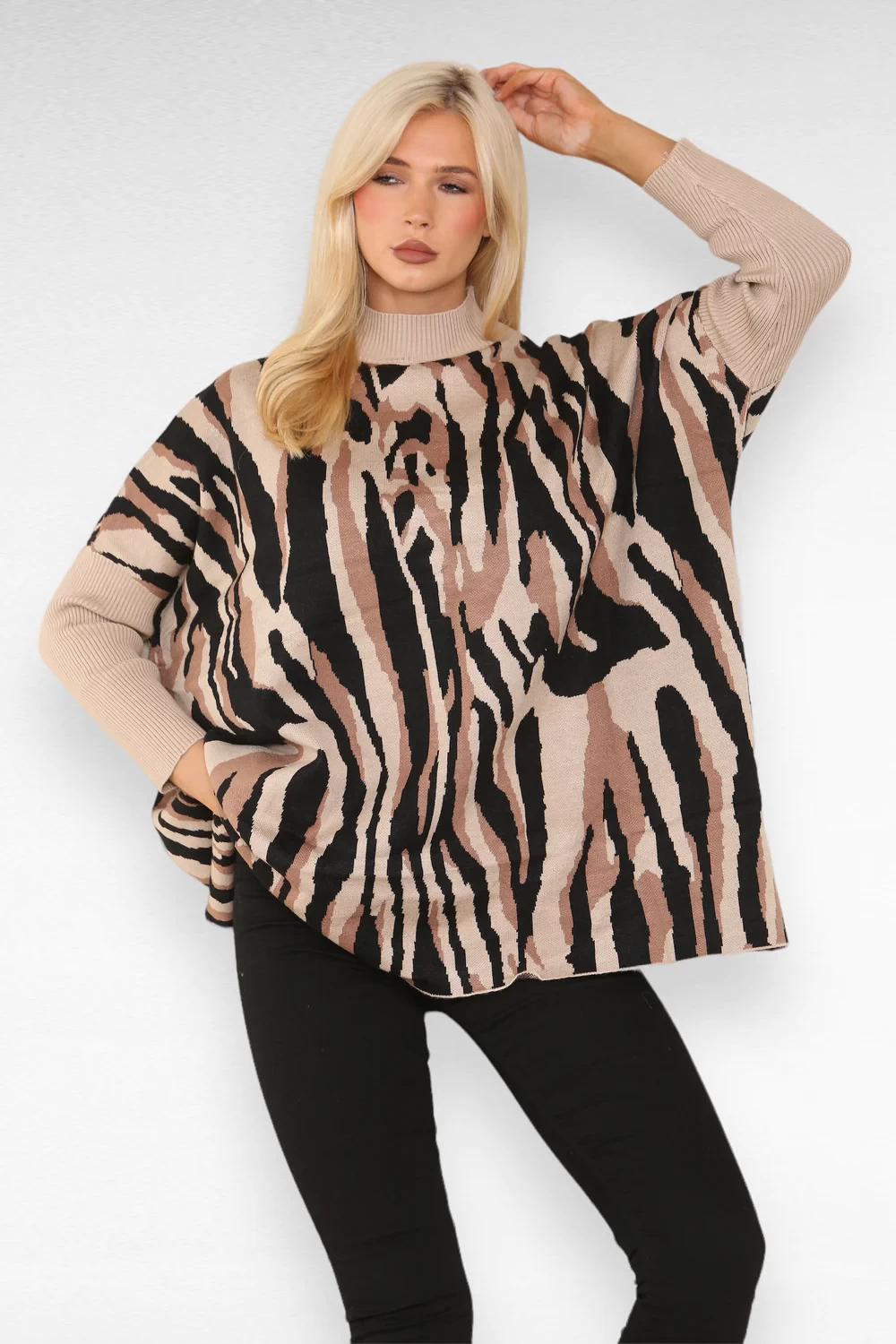 BLAIRE ZEBRA PRINT OVERSIZED JUMPER