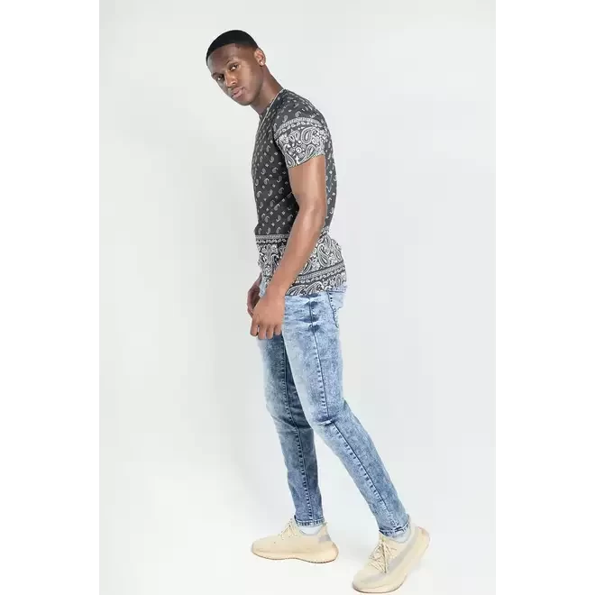 Neon Green and blue distressed slim jeans