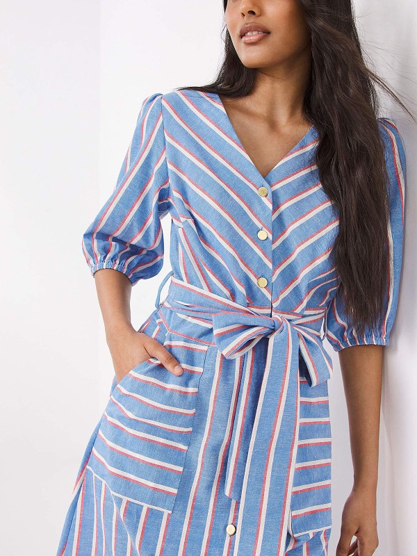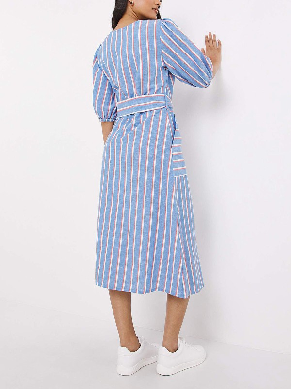 In a fresh dusted stripe, this Cotton-Linen mix dress is perfect for warmer weather, ensuring quality and breathability