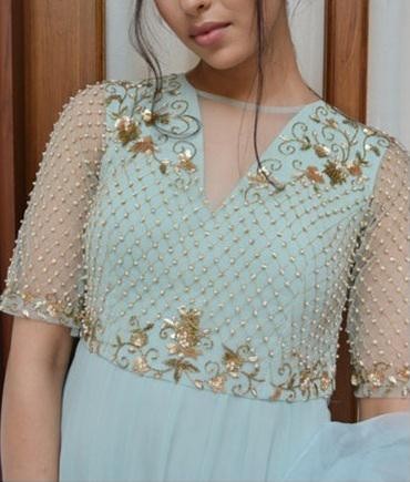 Top :- Georgette With Cording Embroidery Work AND Moti