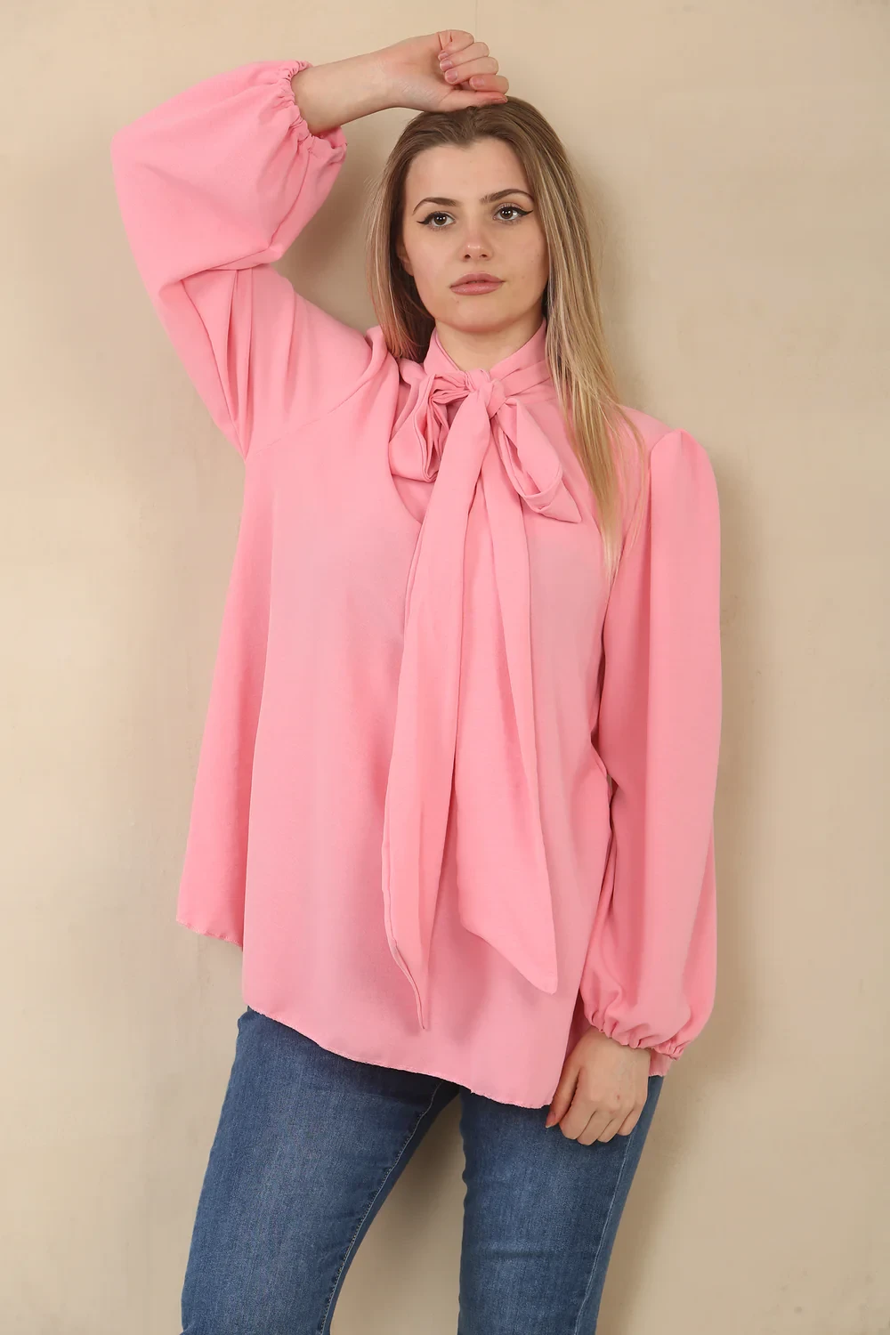 BOW BASIC BLOUSE - PINK