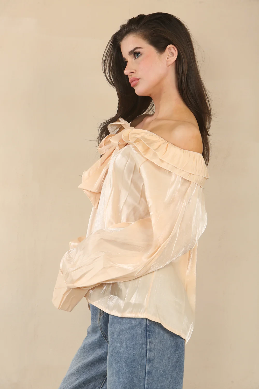 BOW FRILL NECK BLOUSE