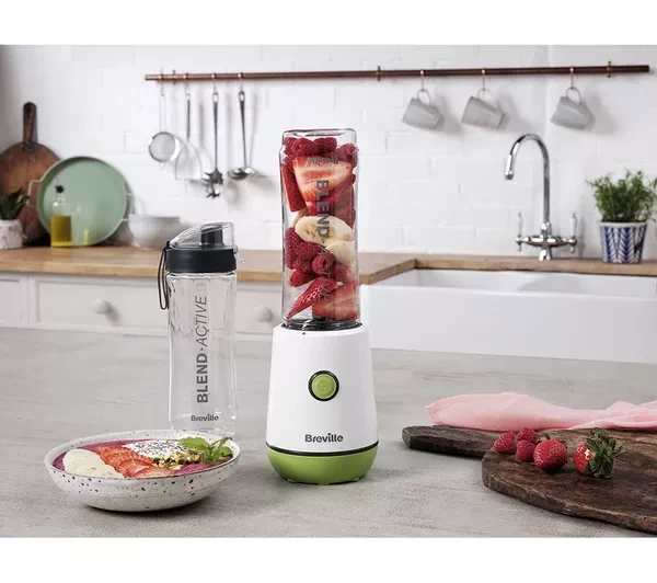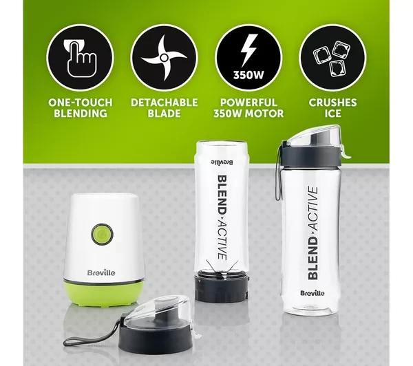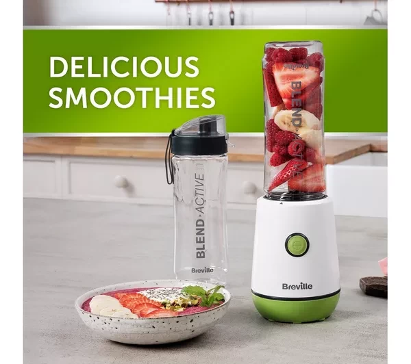 Some blenders struggle when it comes to harder items like ice or seeds. But this Breville Blend Active has a 350 W motor that's got the power to break through the tough stuff. The angled stainless steel blades crush ice, seeds, nuts and frozen fruit so you can enjoy velvety smooth blended drinks, no lumps included.