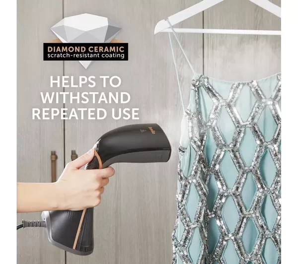 - The steaming plate is protected by a ceramic coating, so it won't get scratched by buttons or zips