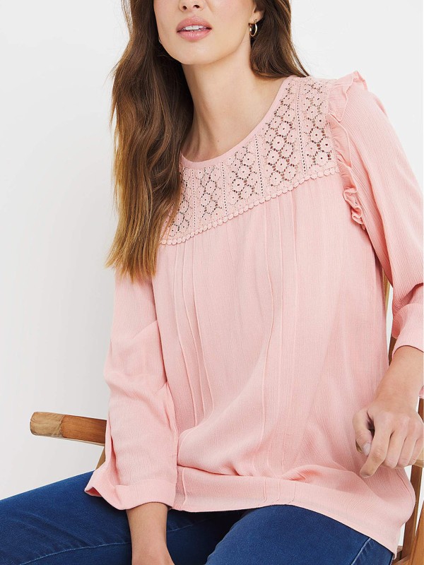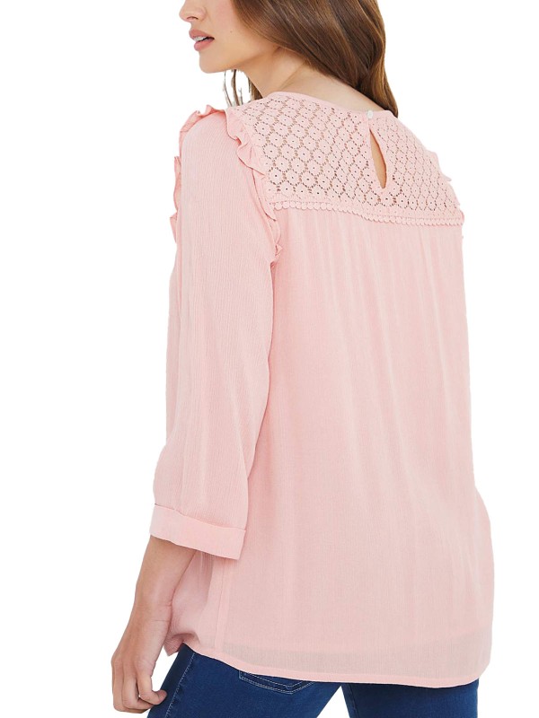 This stunning blouse is a great choice to dress up or down and is designed in a subtle textured fabric. It features a broderie yoke, frill detailing to the shoulder and keyhole opening to the back of the neckline. Length 27in/69cm.