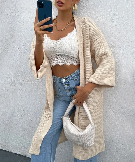 | Color: cream Style: Casual Pattern Type: Plain Length: Regular Temperature: Winter Sleeve Length: Long Sleeve Sleeve Type: Drop Shoulder Fit Type: Loose Fabric: High Stretch Material: Fabric Composition: 100% Polyester |