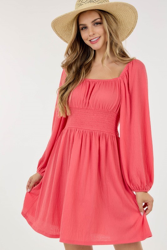 BUBBLE LONG SLEEVE SHORT DRESS