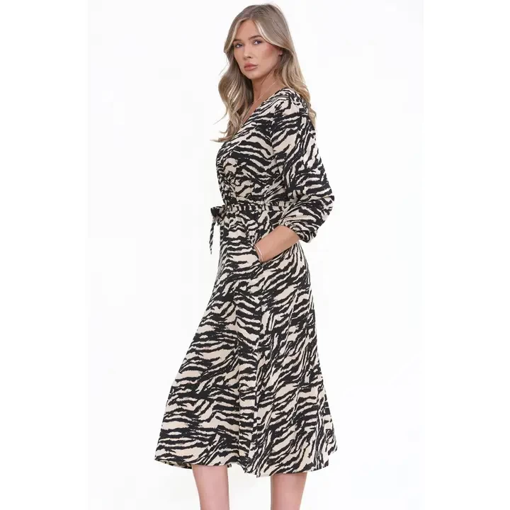 This flattering wrapped dress is perfect for all occastions. - V Neck, with wrapped front, tailor it yourself to decide the depth of the V-Neck - Fits true to size - Midweight, non-stretchy fabric - Composition: 100% Polyester