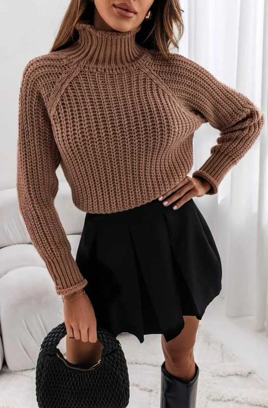 Be the 'envy' in this stylishly chic short cropped knitted jumper top. Choose from various colours. Enjoy this comfortable and stretchy fit. Long sleeves with added high turtle neck design. Approx. size in: One Size (UK 8-12 - fits between size 8 up to size 12). Approximate length: 21"(53cm). Entirely crafted from 100% Acrylic and expertly made in Italy.