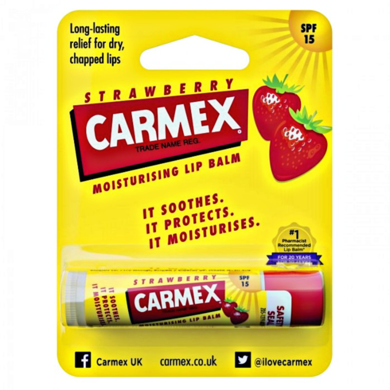Carmex 15 SPF Soothes and Protects Moisturising Lip Balm Strawberry 4.25 g delivers essential hydration and sun protection in a delicious, fruity formula that keeps lips soft and protected all day. Its enriched, fast‑acting blend helps soothe dry, chapped lips by locking in moisture and creating a protective barrier against external stressors like wind, sun, and cold. Infused with SPF 15, it helps shield lips from harmful UVA/UVB rays, making it ideal for everyday outdoor wear. The sweet strawberry flavour and scent add a refreshing, uplifting touch that makes every application enjoyable. Its lightweight, non‑greasy texture glides on smoothly and absorbs comfortably, leaving lips feeling soft, smooth, and revitalised. Designed for practical daily use, the compact 4.25 g tube fits easily in purses, pockets, or backpacks for convenient, on‑the‑go application. Suitable for all skin types, including sensitive lips, it provides gentle, effective care without irritation. Helps prevent dryness, cracking, and flaking while enhancing natural lip softness. Works great under lipstick or alone to boost comfort and smoothness. Dermatologically tested for safety and dependable performance. Long‑lasting moisturisation helps reduce the need for frequent reapplications. Provides reliable sun defence and all‑day hydration in one essential lip balm. Leaves lips feeling beautifully nourished and protected from environmental damage. A versatile daily lip care must‑have that combines soothing relief, SPF protection, and delightful strawberry scent. Carmex 15 SPF Soothes and Protects Moisturising Lip Balm Strawberry keeps lips cared for, hydrated, and protected with every use.