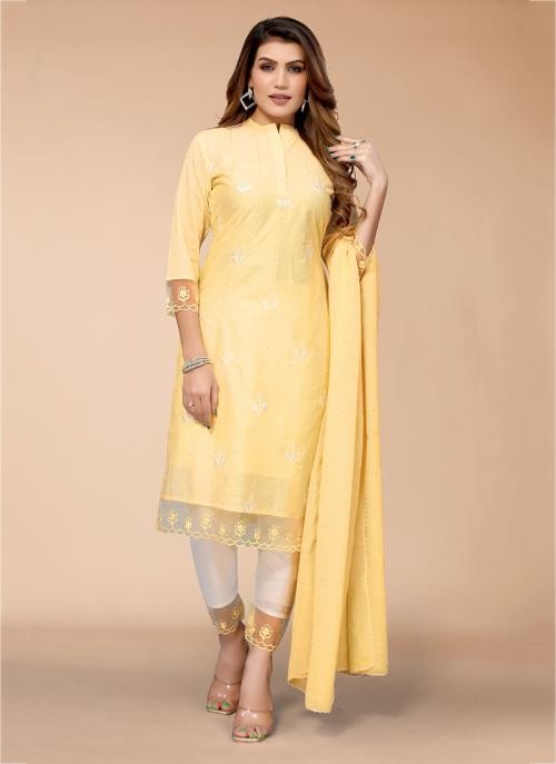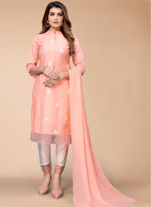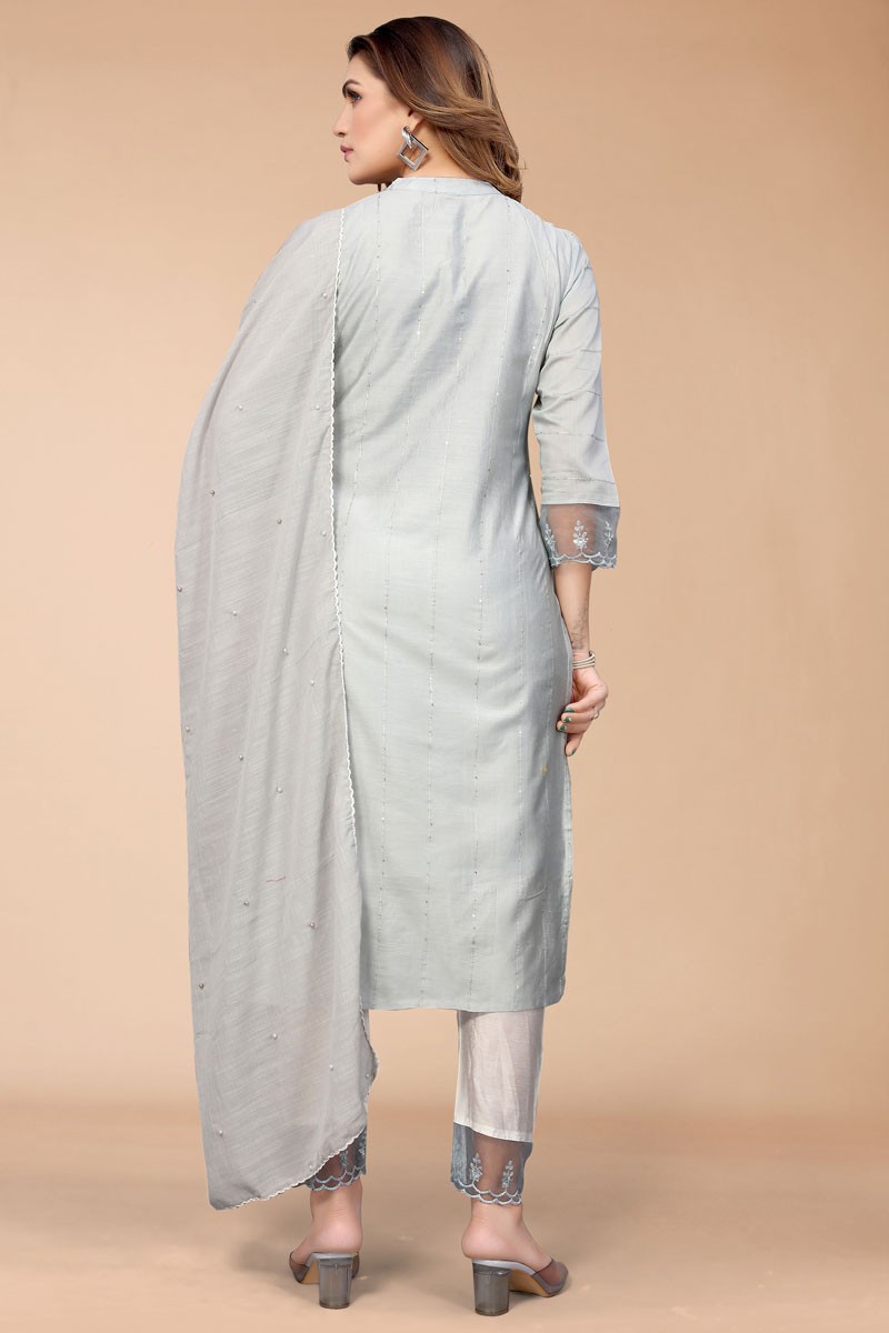 | This Casual Wear Grey Weaving Chanderi Readymade Salwar Suit is accenting the charming feeling. The weaving work appears to be chic and fantastic for any function. |
