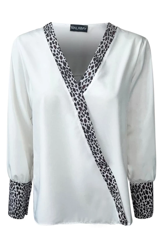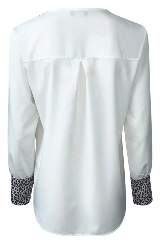 Capture attention in this chic and on-trend shirt blouse top. Featuring a 'V' cut neckline and contrasted with a fierce animal printed detail. The long sleeves are adorned with button detailing at the cuffs and the fabric is soft to the touch. Comes in One Size and approx. sizes ranging from: S (UK 8) M (UK 10) L (UK 12)and XL (UK 14) with an approx. length of: 26" (66cm). Made with 95% Polyester and 5% Elastane, it is both comfortable and stylish. Designed and crafted in Italy with passion and precision. This top is perfect for any fashionista. Get yours now!