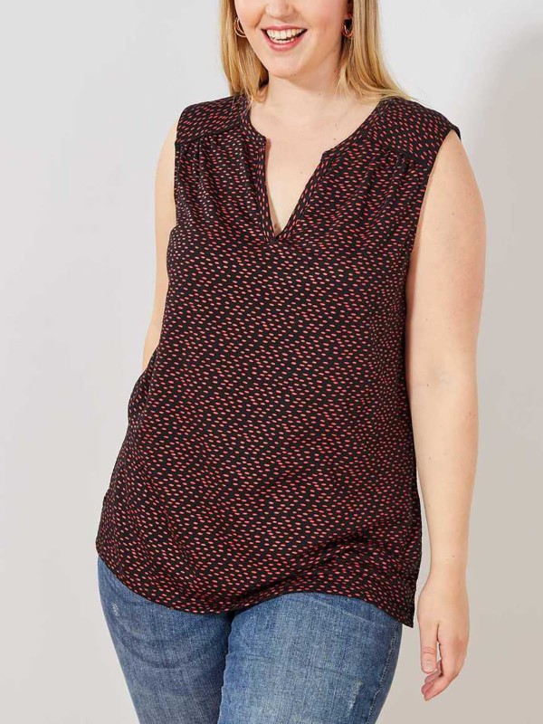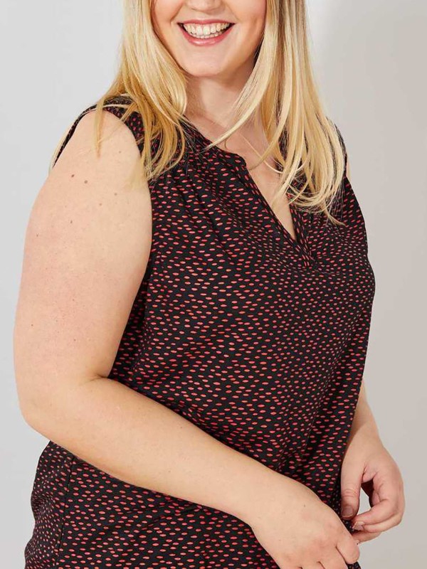 In a sleeveless design with a notched neckline and decorative pleats on the shoulders. Perfect for work-to-weekend dressing, this top is an easy-wearing essential. Whether it's tucked in with tapered trousers for office-appeal or teamed with denim for off-duty vibes, its sleeveless style is an easy-to-wear staple. Length 29in.