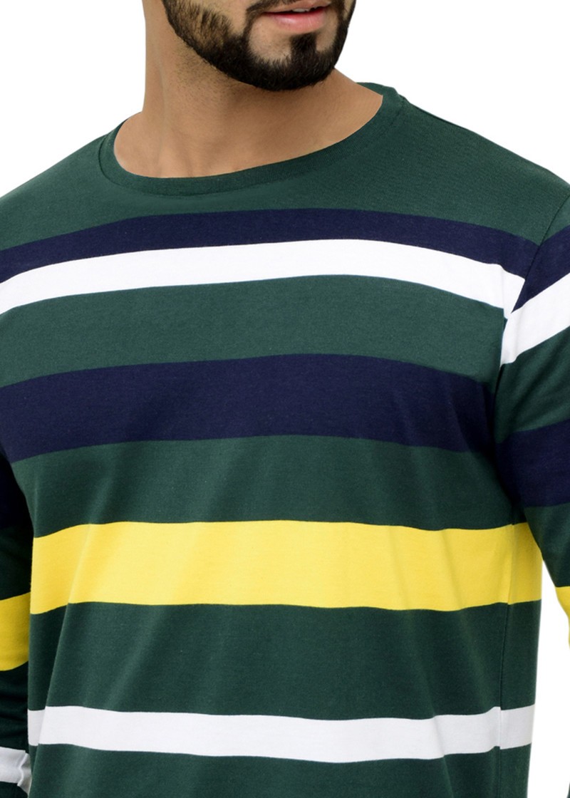 Cotton Blend Striped Men Round Neck Dark Green T-Shirt