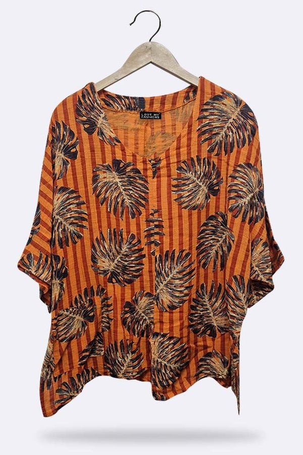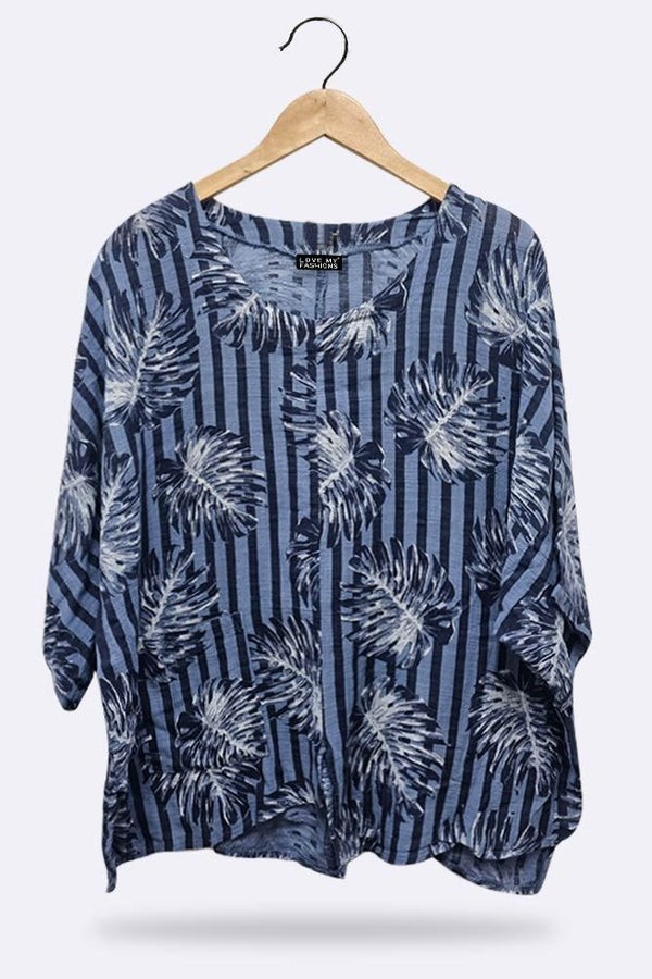 Made in loveable material these are must for any store this season. Features palm leaf print-casual top-beautiful length-one size fits perfectly-italian top.