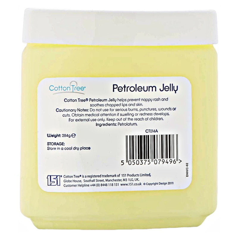 Cotton Tree Petroleum Jelly 284g is a versatile, protective skincare essential formulated to moisturise, soothe, and shield dry or irritated skin with long-lasting hydration. Its rich, smooth texture creates an effective barrier that locks in moisture, helping prevent dryness while restoring softness to rough areas such as elbows, knees, heels, and hands. Gentle and non-irritating, it is suitable for daily use on all skin types, including sensitive skin, and can be applied to cracked lips, minor cuts, or chapped areas for quick relief. The jelly glides on effortlessly, providing a comforting layer that helps protect the skin from wind, cold weather, and environmental stress. Ideal for use as an overnight treatment, it deeply nourishes the skin, leaving it supple and rejuvenated by morning. It can also be used as a makeup remover, brow smoother, or to enhance the natural glow of the skin. Its pure formula ensures a safe and effective solution for families seeking reliable skincare support. Perfect for multi-purpose use at home or on the go, Cotton Tree Petroleum Jelly offers dependable protection, versatile benefits, and lasting moisture in one convenient jar.