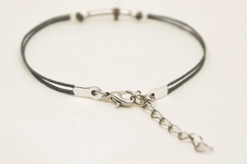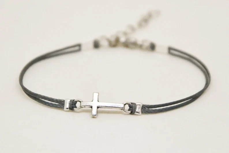 Cross bracelet - cord bracelet with a Antique silver cross charm. The color of the cord is gray and it is made of waxed cotton, the charm is made of zinc alloy metal. Closure: clasp. You can request a different cord color from the colors shown in the last picture.