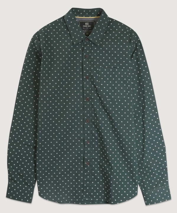 100% COTTON L/S RETRO VIBES PRINT WITH ONE PATCH PKT CARBON PEACH REGULAR FIT