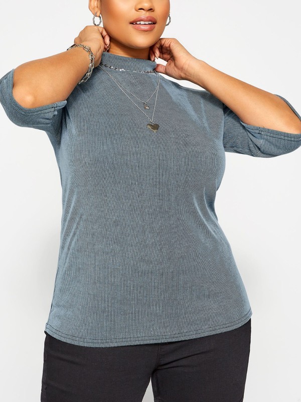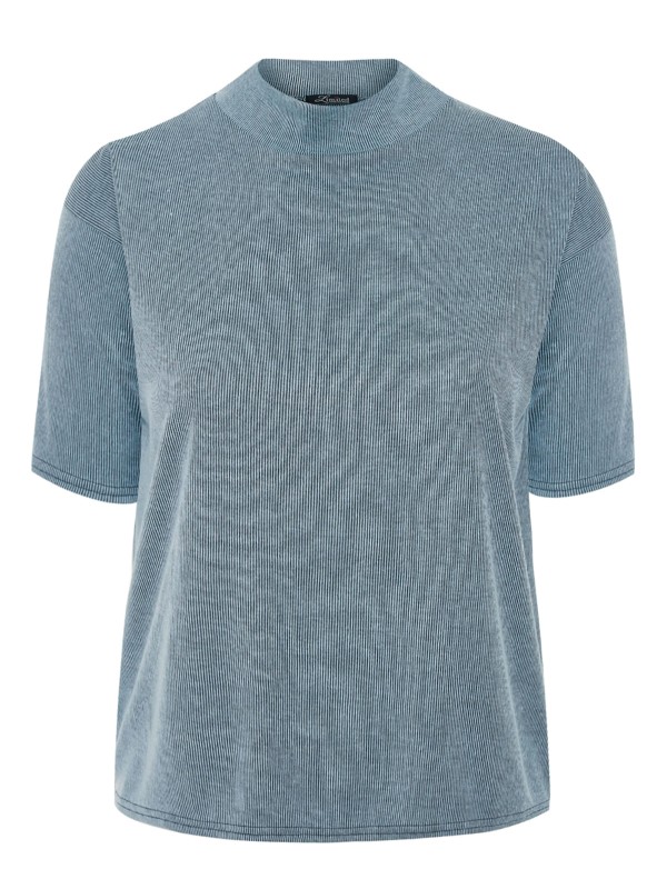 Upgrade your everyday basic collection with this top. It features a ribbed texture with short sleeves and a high neck. Length 28in.