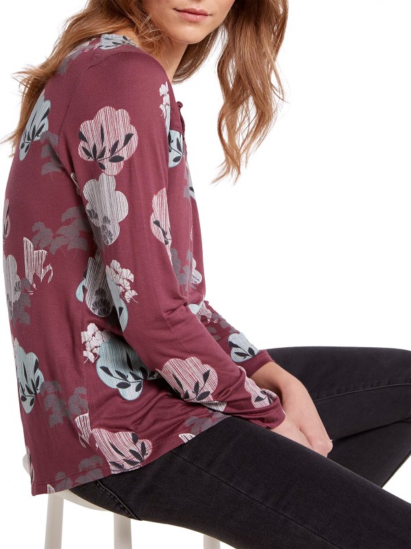 Add vibrant pattern to your casual look in this stylish blouse. Crafted from a lightweight blend with a round neckline, long sleeves and relaxed shape. Length 24in.
