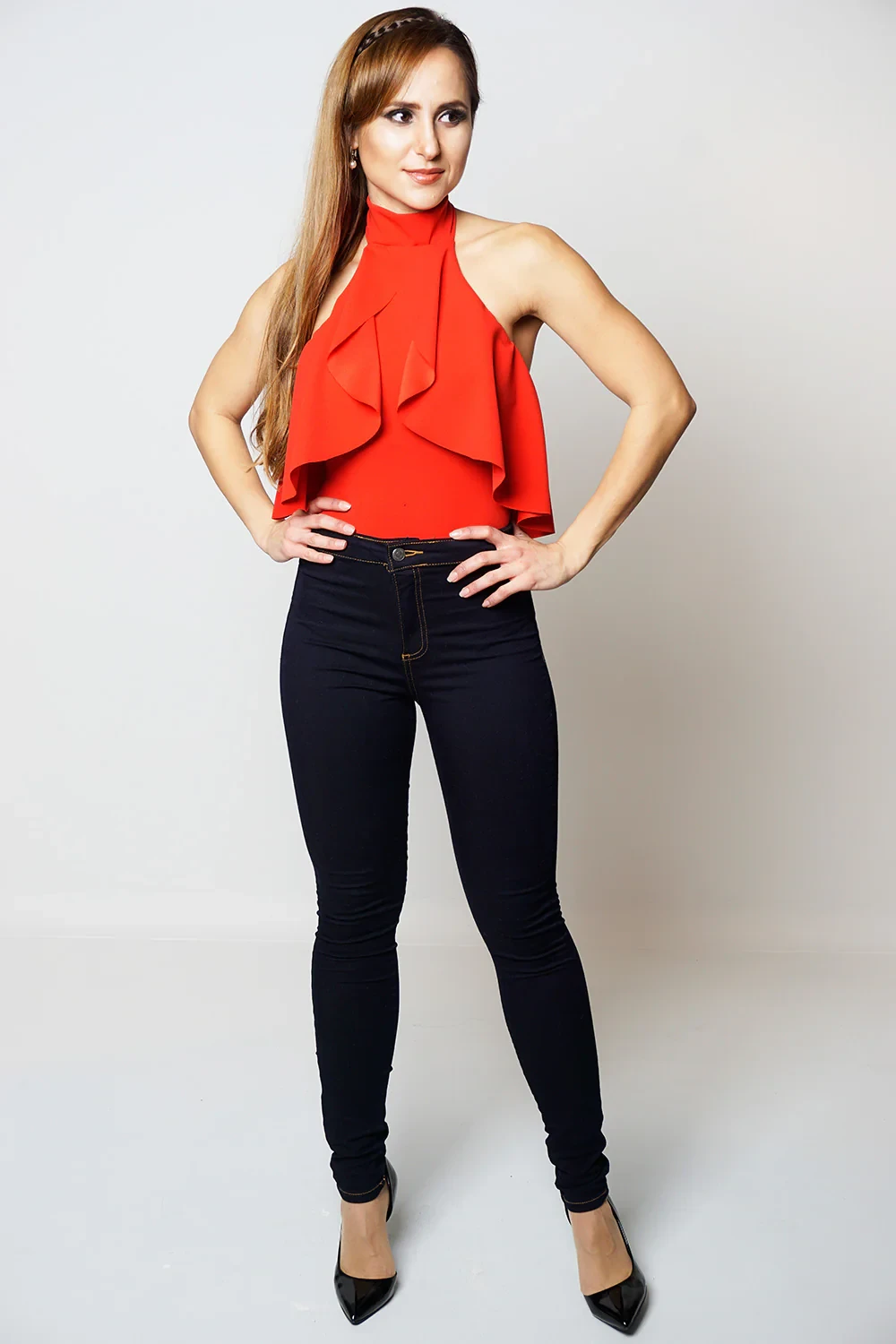 Halter neckline with added frill overlay detail