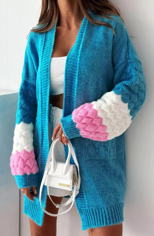 Indulge in the cozy and chic Demi Longline Contrast Knitted Cardigan, and is the perfect new addition to your autumn/winter wardrobe. Boasting of an open front design with added side pockets and contrasting color block details on the stylish long sleeves. Made in Italy from a soft and stretchy blend of 79% Acrylic and 21% Nylon. This cardigan is available in One Size and comes in approx. sizes of: One Size (UK 8-14 - fits between size 8 up to size 14) and measures approximately in length of: 42"(107cm). Don't miss out on this must-have piece that exudes both style and comfort!