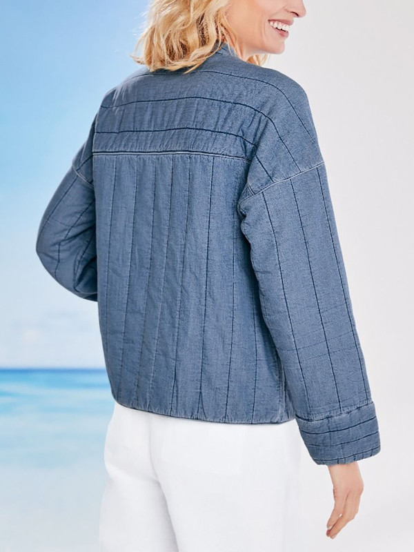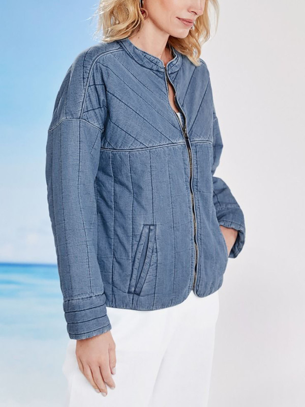 This superb, on-trend padded jacket is our favorite this season! Featuring a mandarin collar, zipped front and dropped shoulders with long sleeves. Vertical concealed pockets. Length 23.5in.