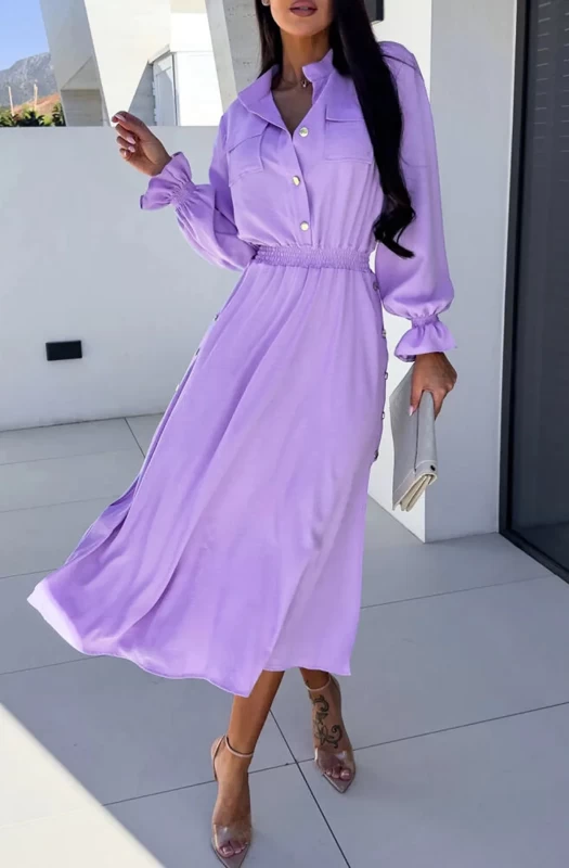 Elevate your summer wardrobe with our stunning Desiree Button Detail Side Slit Maxi Dress. This dress features an open front with button down fastening (top half) and front breasted twin pockets. The shirred elasticated waistband and cuffs adds a touch of elegance, while the stylish side slit with button down fastening creates a chic yet, comfortable look. Crafted in Italy and made from 95% Polyester 5% Elastane. Soft and stretchy and comes in approx. sizes of: S (UK 8) M (UK 10) L (UK 12) XL (UK 14) with an approx. length of: 52"(132cm). Don't miss out on this must-have summer piece for your closet.