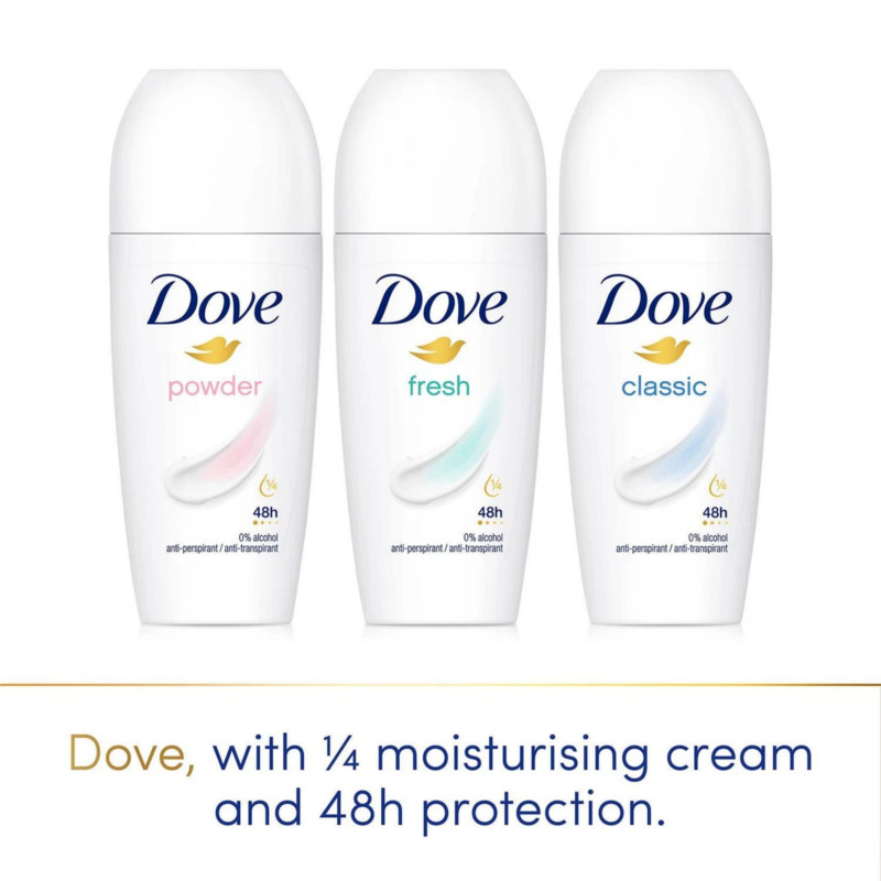 Dove Fresh Women’s Anti-Perspirant Deodorant Roll-On 50ml provides long-lasting protection against sweat and odor while keeping underarms fresh and comfortable throughout the day. Its gentle formula is enriched with ¼ moisturizing cream to maintain soft, smooth underarm skin without irritation. Quick-drying and non-sticky, it absorbs instantly for a comfortable, mess-free application. Suitable for all skin types and dermatologically tested for skin safety and care. Offers up to 48 hours of reliable anti-perspirant protection, keeping you confident in any situation. The subtle, fresh fragrance leaves underarms lightly scented without being overpowering. Helps prevent wetness and odor while protecting clothing from stains. Lightweight and easy to apply with the convenient roll-on design for precise coverage. Ideal for work, workouts, casual outings, or busy daily routines. Supports daily skin care while providing effective underarm protection. Can be layered without discomfort for extended freshness and comfort. Compact and travel-friendly, perfect for on-the-go touch-ups. Maintains smoothness, dryness, and comfort underarms all day. Dove Fresh Women’s Roll-On combines gentle care, long-lasting freshness, and effective protection for everyday confidence.