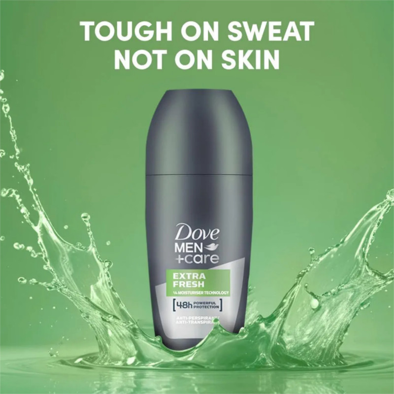 Dove Men+Care Extra Fresh Anti-Perspirant Deodorant Roll-On 50ml provides long-lasting protection against sweat and odor while keeping underarms fresh, dry, and comfortable all day. Its advanced formula is enriched with ¼ moisturizing cream to help prevent irritation and maintain healthy underarm skin. Quick-drying and non-sticky, it absorbs instantly for a mess-free, comfortable application. Designed specifically for men’s skin, it offers up to 48 hours of reliable anti-perspirant protection. Infused with a clean, invigorating fragrance, it leaves underarms lightly scented and confidently fresh. Helps prevent wetness, odor, and discomfort, while protecting clothing from stains. Lightweight and easy to apply with the convenient roll-on design for precise coverage. Suitable for daily use, whether at work, workouts, or outdoor activities. Supports skin care while delivering effective underarm protection. Can be layered without discomfort for extended freshness and confidence. Compact and travel-friendly, perfect for on-the-go use. Maintains smoothness, dryness, and comfort throughout the day. Provides a refreshing, energizing feeling for all-day confidence. Dove Men+Care Extra Fresh Roll-On combines effective protection, gentle care, and long-lasting freshness for active men.
