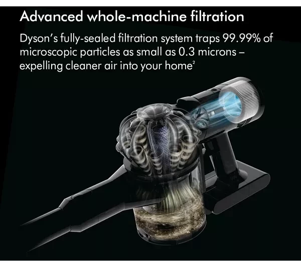 - Its advanced filtration catches 99.99% of nasty dirt particles down to 0.3 microns in size