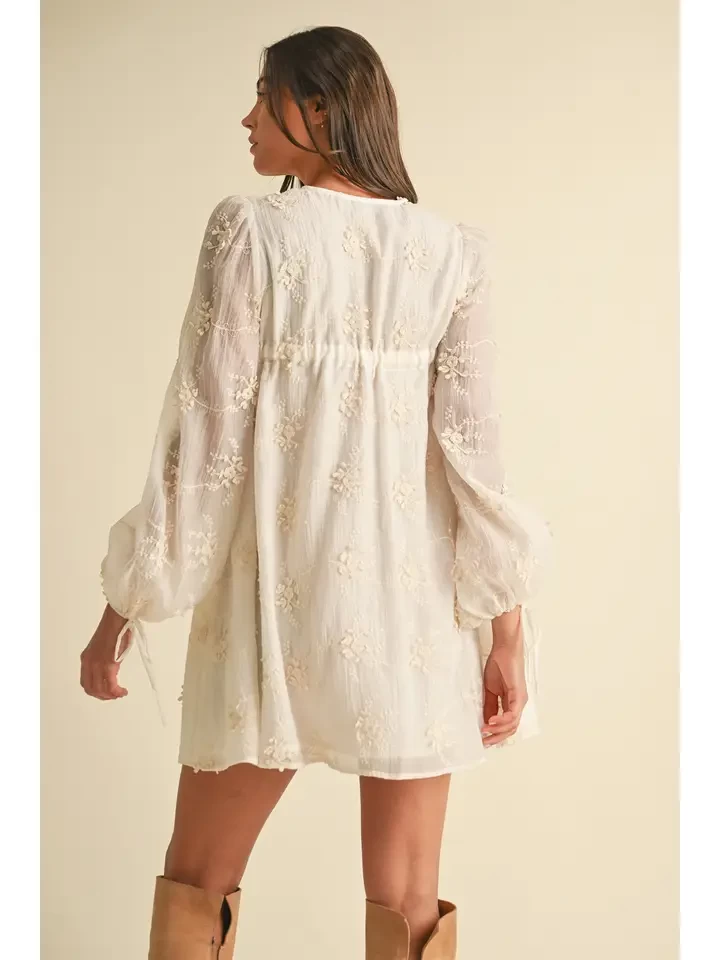 Embroidered Long Sleeve Mini Dress